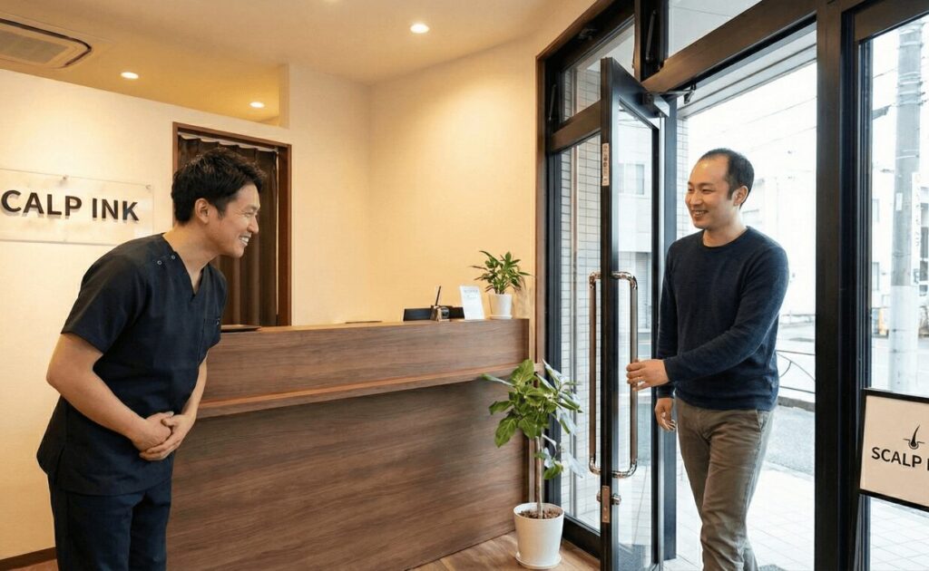 スカルプインクの施術は、1回あたりの施術時間や来店回数が事前に説明され、無理のないスケジュールで進められます。部位や範囲によって異なりますが、長時間拘束される設計にはなっておらず、仕事や家庭の予定と両立しやすい点が特徴です。また、施術工程はあらかじめ標準化されており、カウンセリングから施術、アフター説明までの流れが明確です。そのため、「何をされるのかわからない」という不安を感じにくく、初回でも流れを把握しやすくなっています。施術のたびに内容が変わるのではなく、計画に基づいて進行するため、見通しを持って検討したい方にとって判断しやすい設計です。